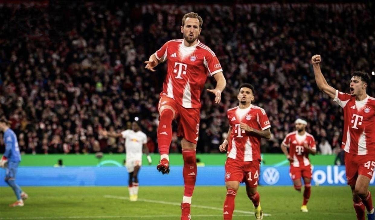 比赛进程完全体现了双方的实力和状态差距。 上半场第22分钟,拜仁小将卡尔在禁区内闪转腾挪制造点球,头号射手哈里·凯恩主罚一蹴而就,为球队打破僵局。 仅仅5分钟后,凯恩在禁区外接球,稍作调整后轰出一记势大力沉的远射,皮球直挂死角,拜仁2-0领先。 凯恩在5分钟内完成梅开二度,彻底点燃了客场球迷的激情。 下半场,拜仁门将诺伊尔被换下休息。